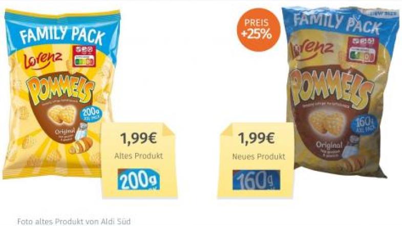 Um Preiserhöhungen zu verschleiern, benutzen Hersteller gerne Hinweise wie "neue Rezeptur" oder "bessere Qualität". Mitunter werden Verpackungen kaum oder nur minimal verändert. Dann ist das Staunen beim Filme-Abend groß, wenn sich in der Chipsverpackung nicht mehr 200 Gramm, sondern nur noch 160 Gramm Chips befinden. Oder in der Packung Knäckebrot fehlen bei gleichem Preis plötzlich 15 Gramm. Kleine Veränderungen bemerken Verbraucher:innen auf den ersten Blick häufig nicht.
